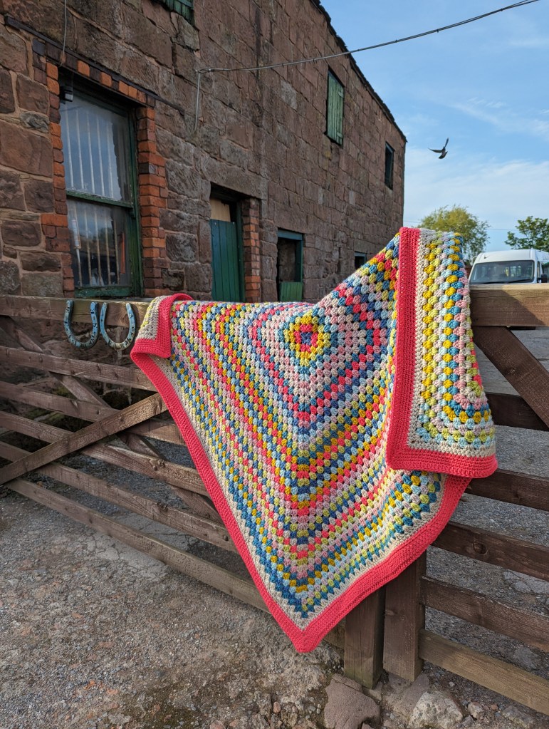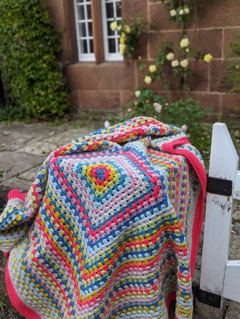 The final step is to add a border around the entire blanket. A simple border of a few rows of single crochet stitches can add a polished look and help unify the design. Sometimes, I opt for a more intricate border with scallops or picots to add an extra touch of elegance. The finished blanket is not just a cosy and functional item but also a beautiful piece of handmade art that reflects the time and care put into its creation. Whether it’s draped over a couch, used as a bedspread, or given as a heartfelt gift, a granny square blanket is a cherished item that brings warmth and joy.