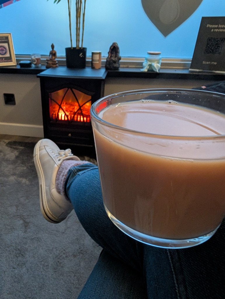 After the session, I enjoyed a refreshing shower in the private room and then relaxed in the lounge with a hot cup of tea and biscuits by the fire. The peaceful ambiance, gentle music, and welcoming environment made it the perfect way to end the experience.