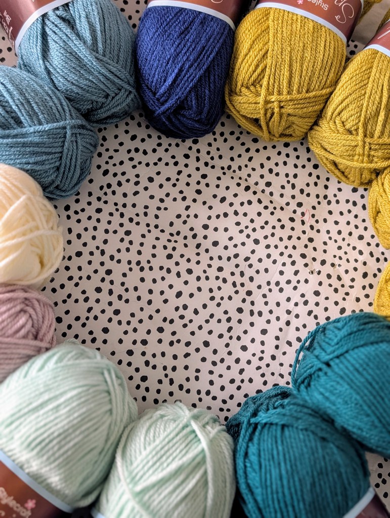 The quantity next to each yarn shade is an example of how many 100g balls I used. Everyone crochets slightly different so please use this as a rough guide only as you may need slightly more or less.