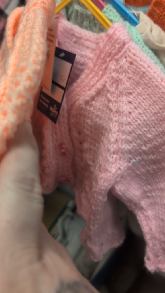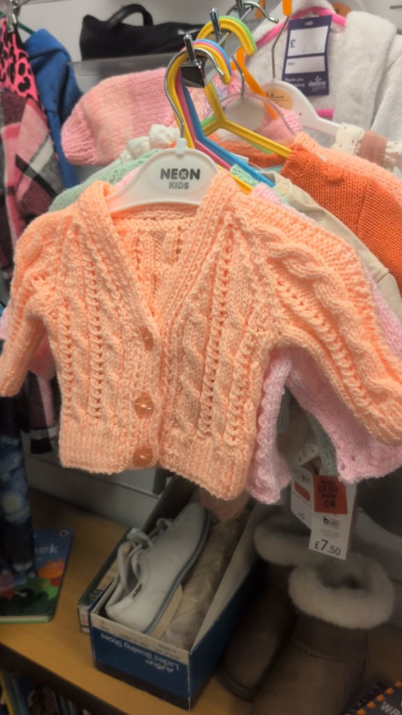 Some charity shop shelves are stocked with baby blankets, cardigans, hats, and scarves that were made with love, simply waiting for someone to pick them up and appreciate them.