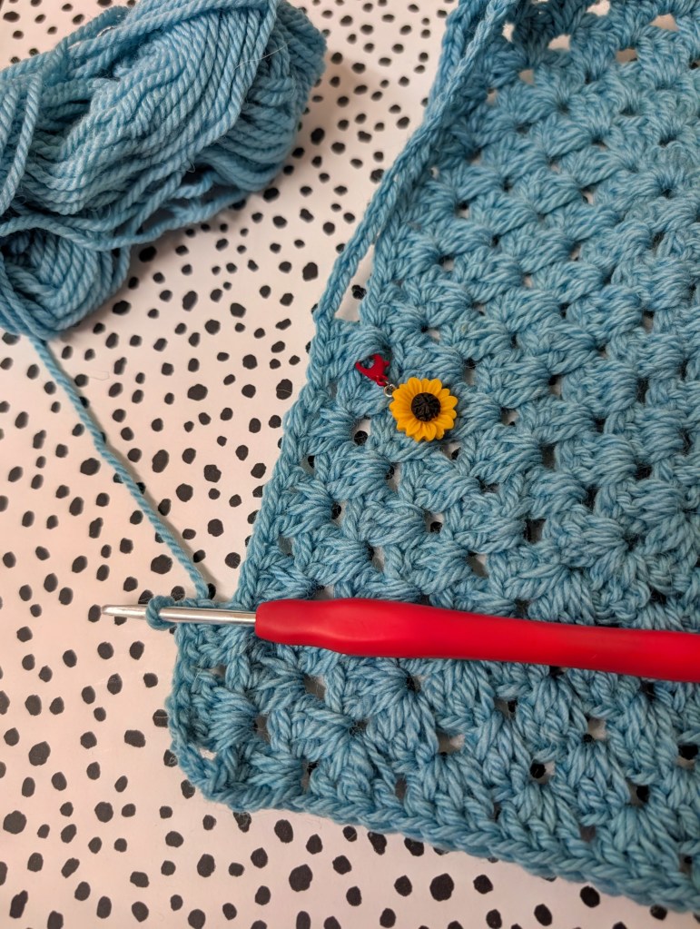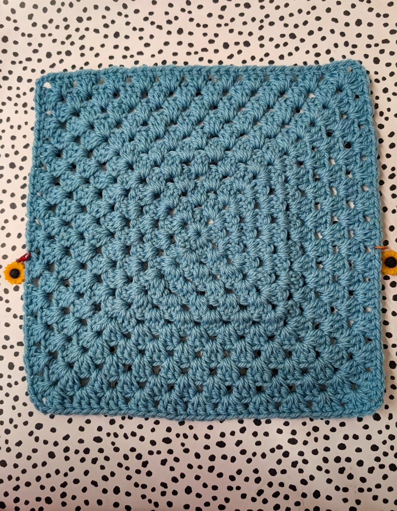 Once your granny square reaches the desired size, lay it flat.