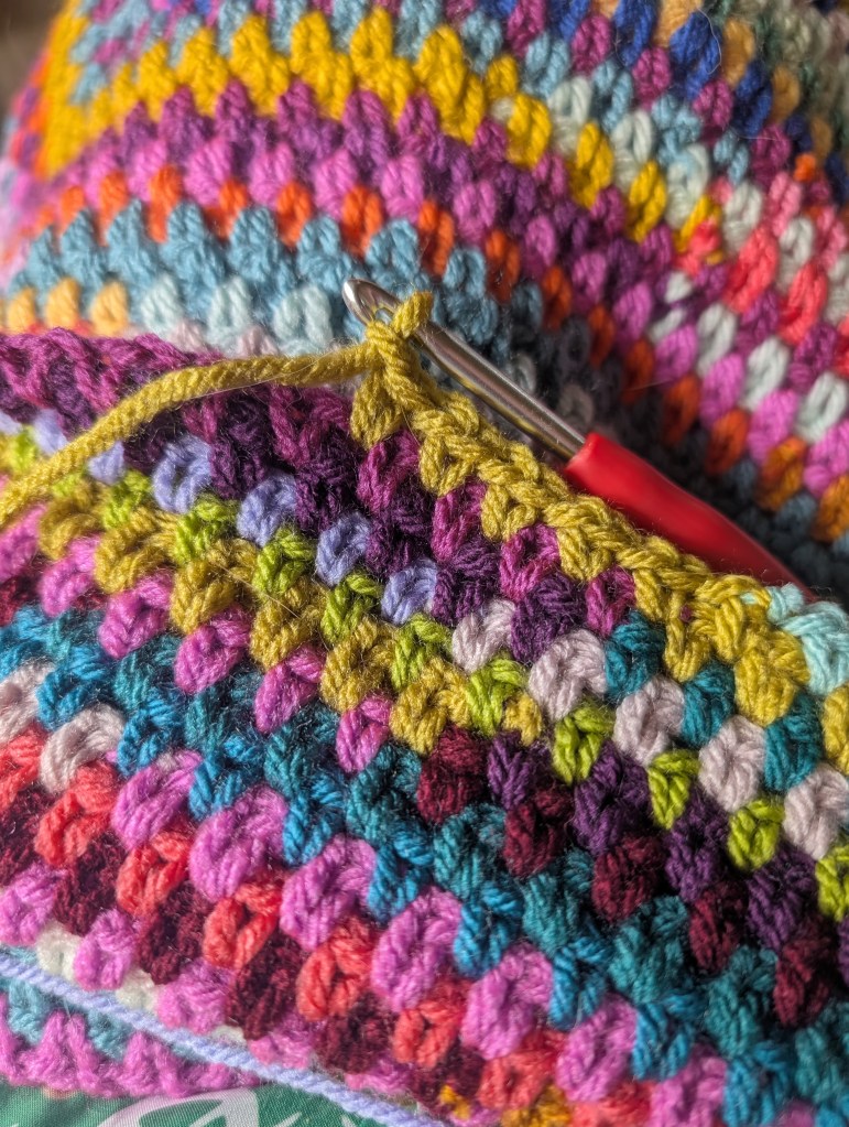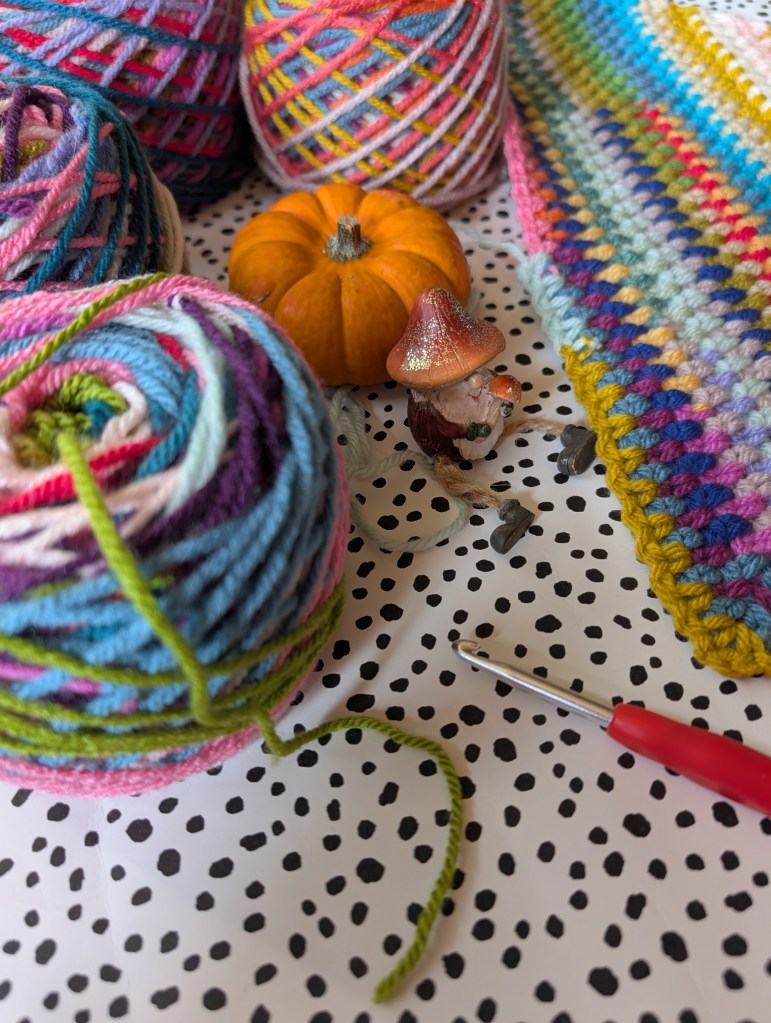 The chunky yarn is needed for a scrappy shawl I am making, I wanted Magenta, Mushroom & Storm Blue to be the main shades. The mixed scrappy colours I have been storing will be crocheted using linen stitch as I feel like a little change.